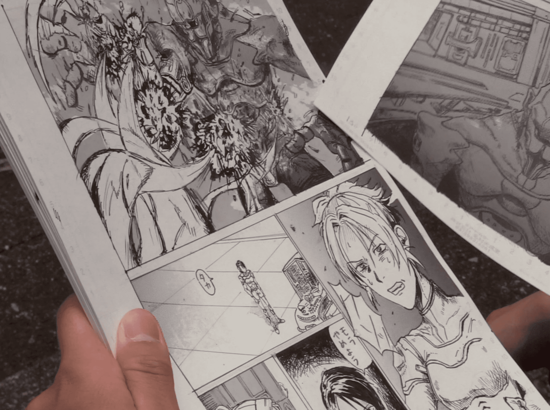 I drew 6 pages of manga manuscripts that appeared in the film as a fan-made manga drawn by Aida. I used "Neon Genesis Evangelion" and "Bokurano" as references when creating the characters and settings.
